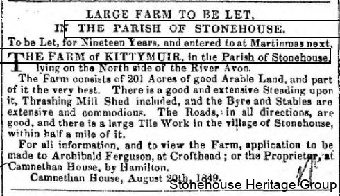 Stonehouse being a rural village was and still is surrounded by many farms. One of the earliest records we have of residents of Stonehouse farms was an extract from the Minutes of the Kirk session which lists names of persons resident in the parish. The following information has been extracted from the information printed in Naismiths Statistical account of Stonehouse.