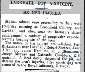 Along the road between Glassford and Quarter, small mines were developed at Thinacre, Knowetop and Darngaber in the 1870’s possibly to replace the original mines closer to Quarter.