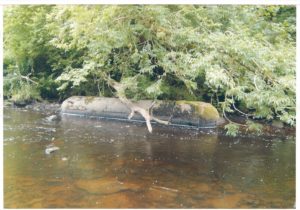 Around 1995 a number of members from the heritage group retrieved a coal bogie (hutch) from the river Cander near overwood. The attached pictures show the bogie ion various states from its retrevial from the river to new wood for the axles. The repairs were carried out by Douglas Torrance and Robert Freel. The bogie was parked in the garden of 67 King street Stonehouse.