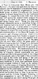 Newspaper article from 1864 writing about mine and railway
