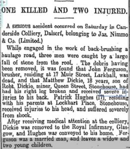 Work was dangerous and many accidents were recorded with the following newspaper cuttings confirming this.