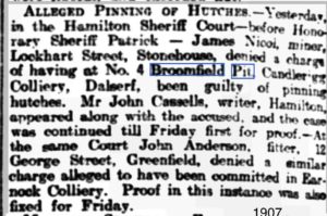 Late 1830’s – coal mining began in the Quarter area from shallow drift mines.  The Ferniegair pits opened around 1859.