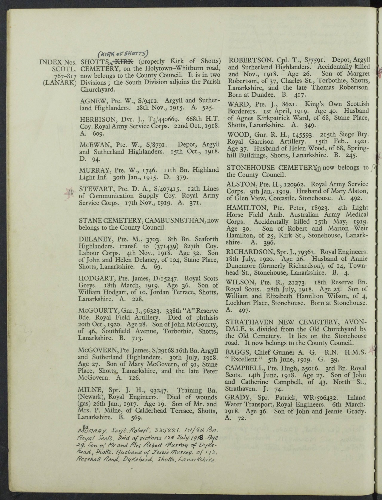 Stonehouse Cemetery (Manse road)