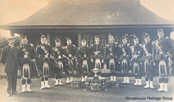 The pipe band was formed on 11th October 1899 under Pipe Major Hector McInnes, accompanied by his two sons on drums and Peter Summers as his Drum-Major. They formed the backbone of the band. Membership  grew steadily, practising originally in Townhead School. It was a competing band and had their most notable success in 1909 when it set a world record winning the Argyll and Lauder Shields at the Cowal Games. This was undoubtedly their most successful period, winning many trophies including; county champions between 1902-1905, three Lauder shields and one Argyll third between 1910-1912 and after the Great War a Lauder second and Graham Moffat Cup in 1919.