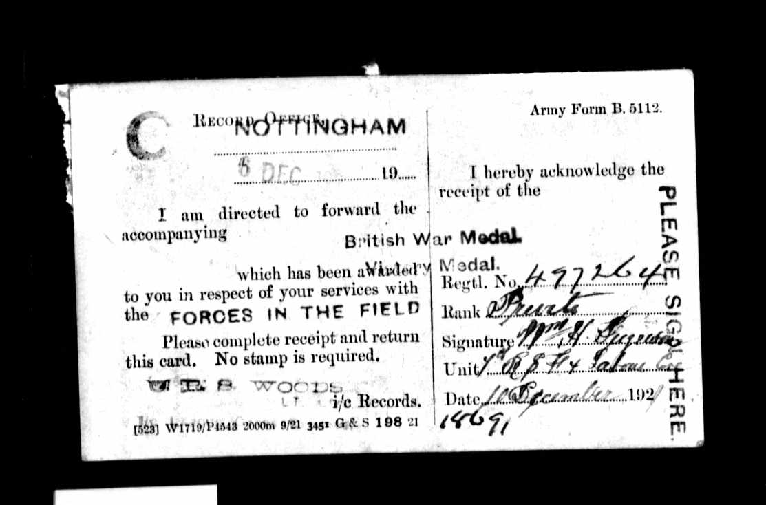 Listed on St Ninian’s Church plaque as having “served” and therefore presumed to have survived. Married to Margaret Kiddie 3-12-1903 Coatbridge. Three children David, Jennie and Wullie. Originally joined the Royal Scots Fusillers but was transferred to Gordon Highlanders 1917.