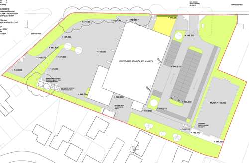 The construction of the primary school is a steel frame structure with holorib decking topped with a concrete floor slab on pads/strip foundations. The building will have predominantly a facing brick outer leaf with areas of metal cladding and curtain walling on the elevations. The roof will be an aluminium standing seam roof