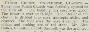1946 Union of Hamilton Memorial Church and St. Ninian’s Parish Church. United charge renamed Stonehouse Church of Scotland. United Guild of Stonehouse Church of Scotland formed.