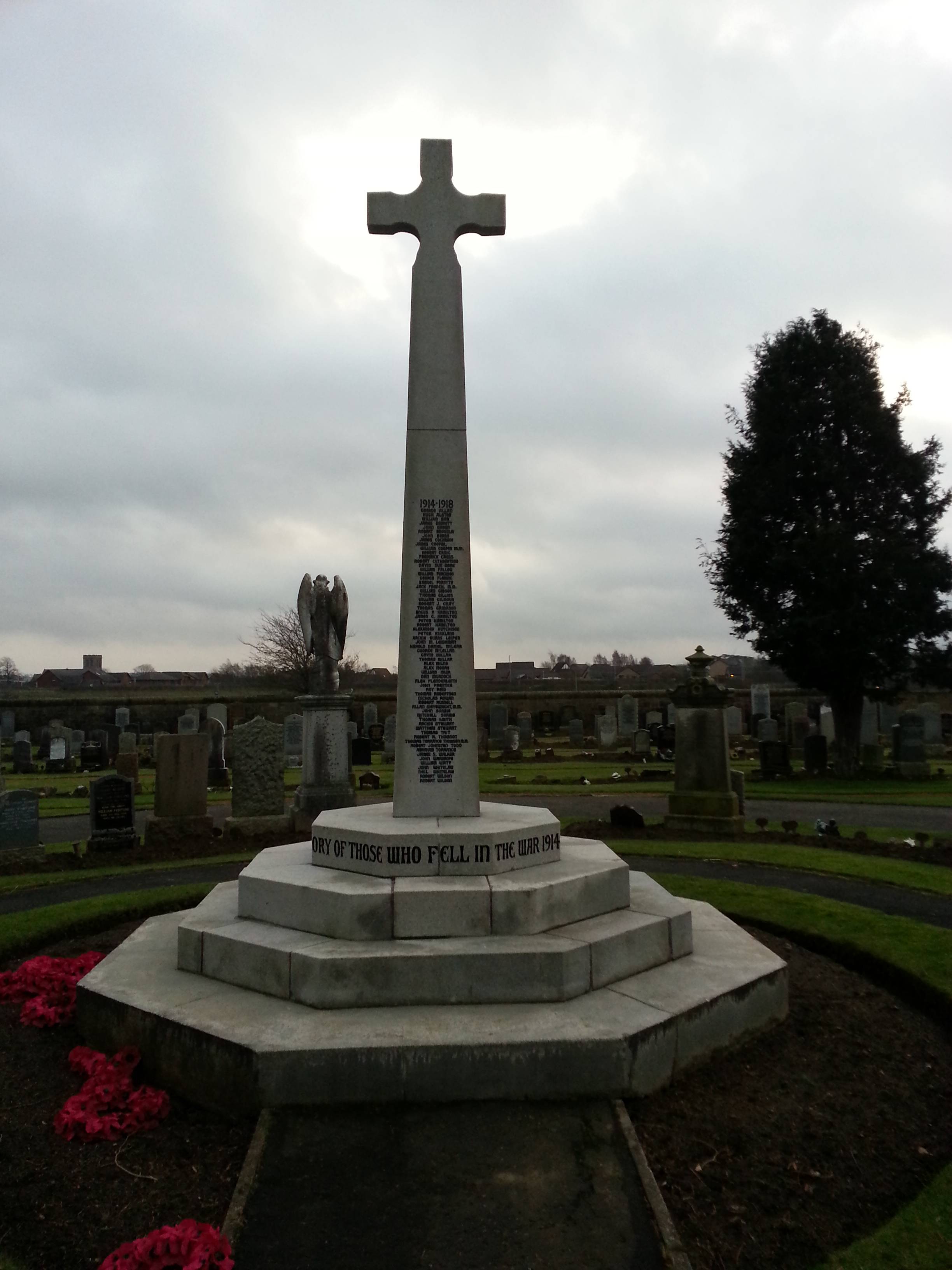 The Stonehouse war memorial is a Martyrs Cross situated on a four stage base. The maker was Dr P McGregor-Chalmers architect. The memorial was unveiled in June 1921 and re-dedicated on 8th November 2008 when further names were added.