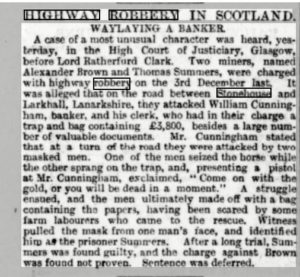 In 1893 a highway robbery took place at the bridge and the story was widely published over Scotland and England. The following news cuttings are just two from the newspapers at the time. Lanacaster News and Illistrated Police news.