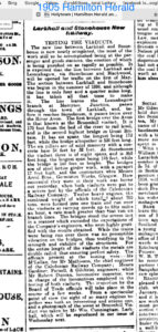 Testing of the viaduct took place in 1905 with 12 heavy engined locomotives which provided a combined weight of 780 tons at speeds of 50 miles per hour. Officers present a the testing were Mr Mclelland for the Caledonia Railway company, engineers Gardiner, Farnell and Gilchrest and Robert Duncan Locomotive inspector.
