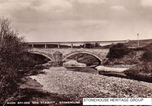 Most bridges in Lanarkshire, including Stonehouse, were built before the introduction of steam propelled and motorised transport. These bridges were made to the requirements of the day which was for cattle or horse and cart transport, and in many cases upgraded to cope with the changing face of transportation and increased demands on roads. Many of these old bridges were of square span, masonry arch construction, for horse traffic, but generally capable of coping with the heavy goods traffic of today. However, some bridges such as the Woodlands bridge (Thomas Telford 1821) and the Linthaugh bridge (c1772) are less able to facilitate the pressures and practicalities of of modern day traffic. Both bridges have suffered through weathering and deterioration of the sandstone, which have affected their ability to cope with heavy traffic. The railway viaduct crossing the Avon was constructed by the Arrol Bros. in 1904 (demolished 1984).