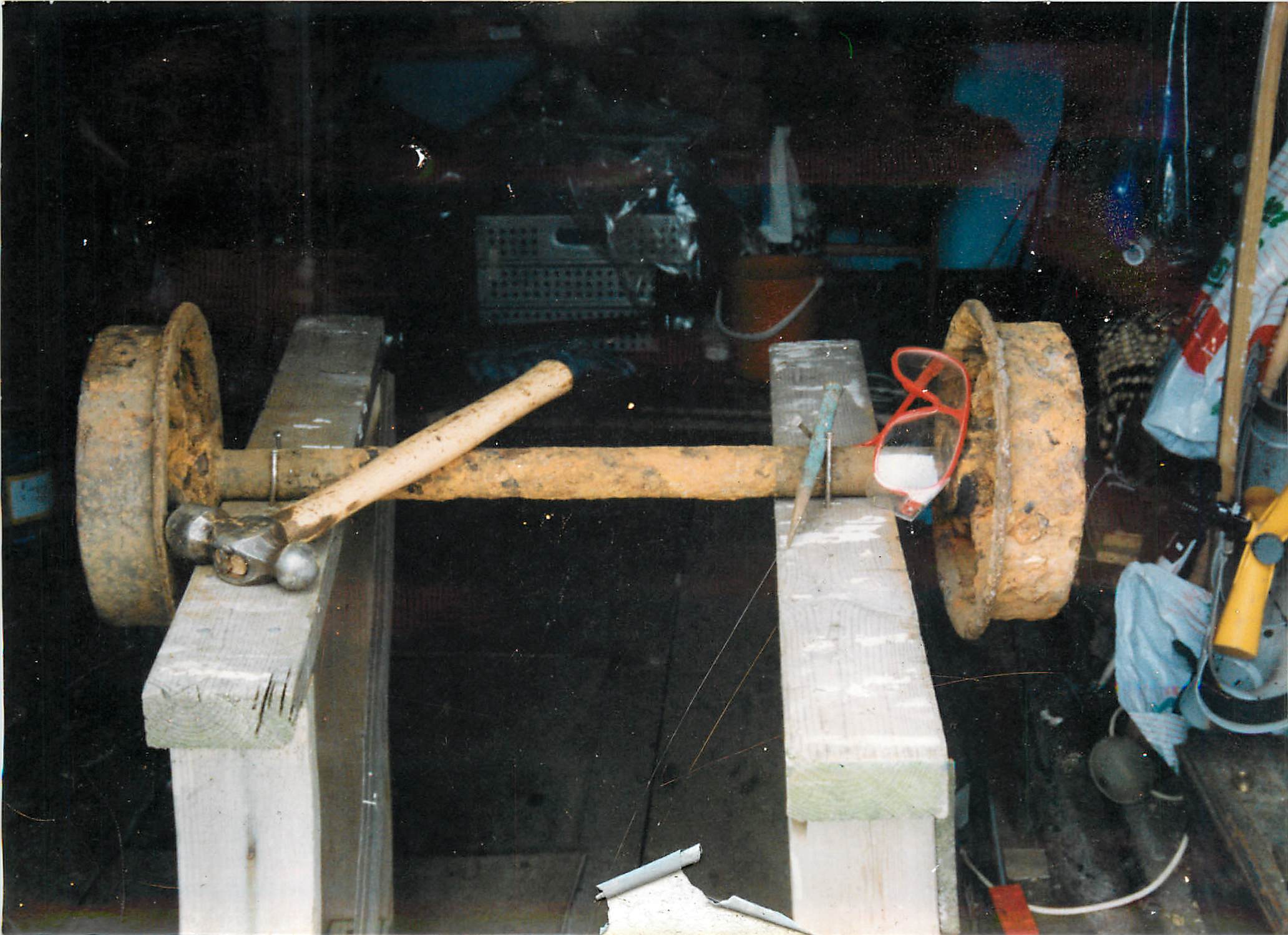 Around 1995 a number of members from the heritage group retrieved a coal bogie (hutch) from the river Cander near overwood. The attached pictures show the bogie ion various states from its retrevial from the river to new wood for the axles. The repairs were carried out by Douglas Torrance and Robert Freel. The bogie was parked in the garden of 67 King street Stonehouse.