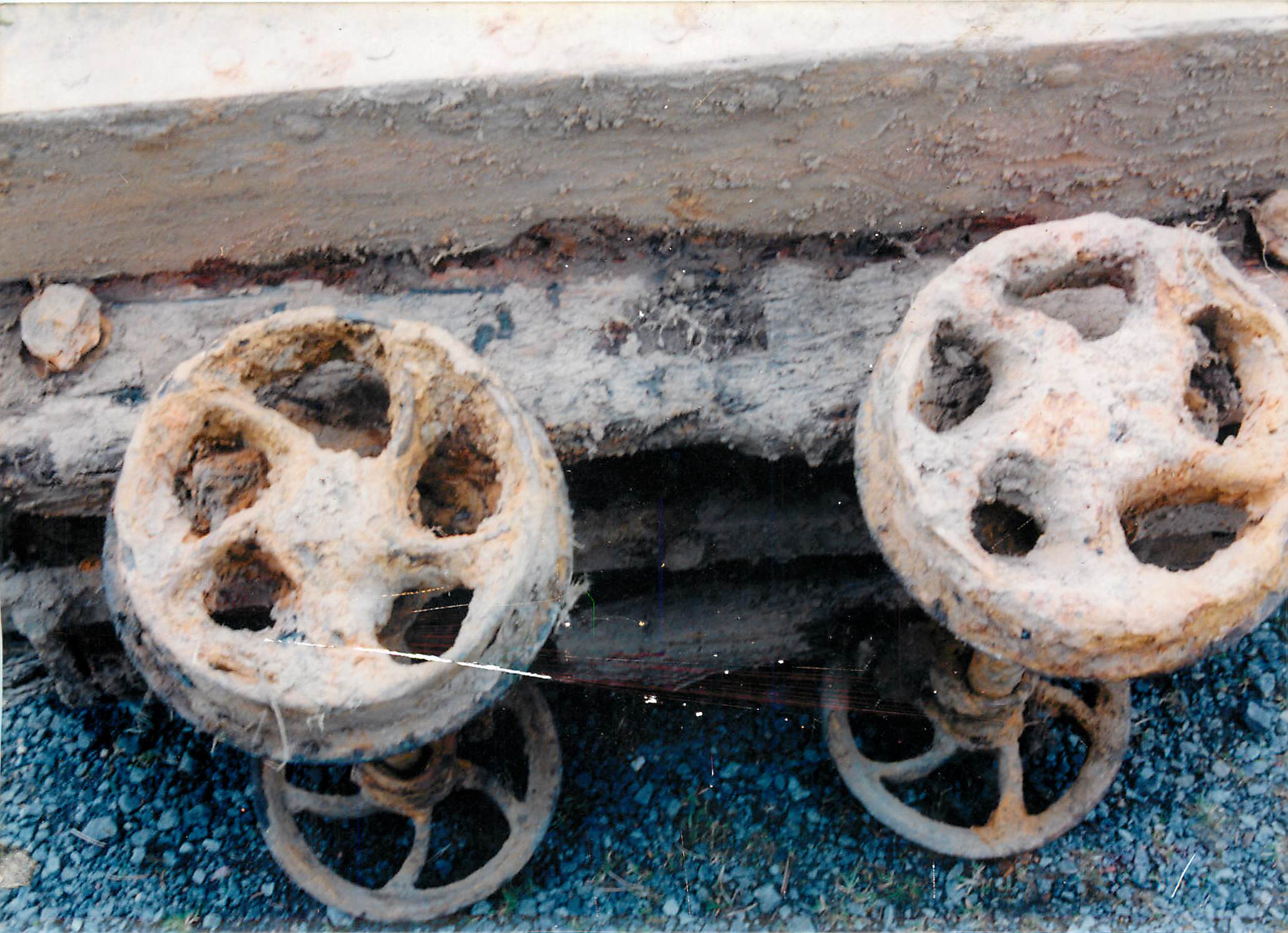 Around 1995 a number of members from the heritage group retrieved a coal bogie (hutch) from the river Cander near overwood. The attached pictures show the bogie ion various states from its retrevial from the river to new wood for the axles. The repairs were carried out by Douglas Torrance and Robert Freel. The bogie was parked in the garden of 67 King street Stonehouse.