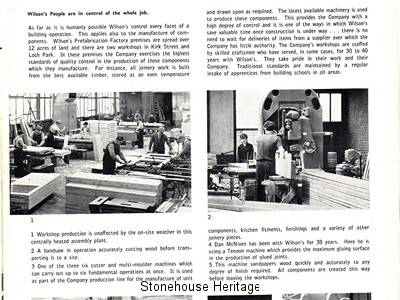 Pre-fabrication of house building materials in the early 1950’s saw the company manufacture most of the housebuilding components at its factory in Stonehouse . The company had its own premises which included joiners shop, a transport pool of machinery and men as well as running its own  buses for its workers when it was working in central  Scotland. The attached articles in the Scotsman in 1968 and in Wilsons own sales brocheure outline just how big a building company they were.  The company was involved in many house building  programmes across the county which included the following.