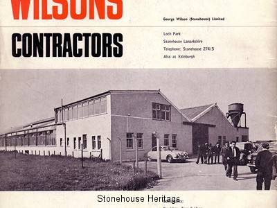Pre-fabrication of house building materials in the early 1950’s saw the company manufacture most of the housebuilding components at its factory in Stonehouse . The company had its own premises which included joiners shop, a transport pool of machinery and men as well as running its own  buses for its workers when it was working in central  Scotland. The attached articles in the Scotsman in 1968 and in Wilsons own sales brocheure outline just how big a building company they were.  The company was involved in many house building  programmes across the county which included the following.