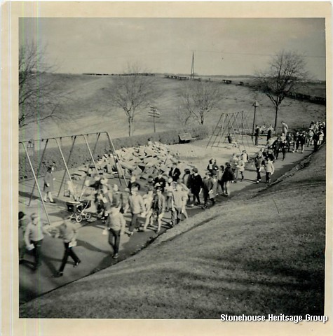 The  public park was made possible due to the kind generosity of a former native of Stonehouse, Alexander Hamilton. Born and brought up in Stonehouse, he later made his fortune as head of the Victoria Carpet Company in Kidderminster and later making khaki uniforms for the troops in the Great War. It was his wish that he could leave something for the village that he visited annually and loved so dearly. Thus the council were left the task of finding a suitable site. After much discussion and argument a ten acre site was purchased for £500 from the land of Holm farm. Many people thought a flatter area would be more appropriate and others even thought Mr Hamilton would have been better spending his money on a factory for Stonehouse.