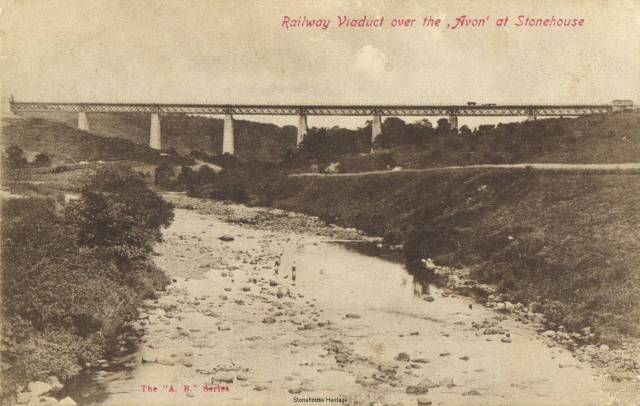 The Cander Water Viaduct  was built in 1860 and carried the first railway line in to Stonehouse. It came from Dalserf Junction (Ashgillhead) to Birkenshaw, to Stonehouse then to Cot Castle Terminus. This particular line was changed when the Stonehouse and Larkhall Viaducts were opened in 1905. The line at this stage carried only goods and mineral traffic serving the many pits and works, with the terminus at Cotcastle serving the local agricultural community.