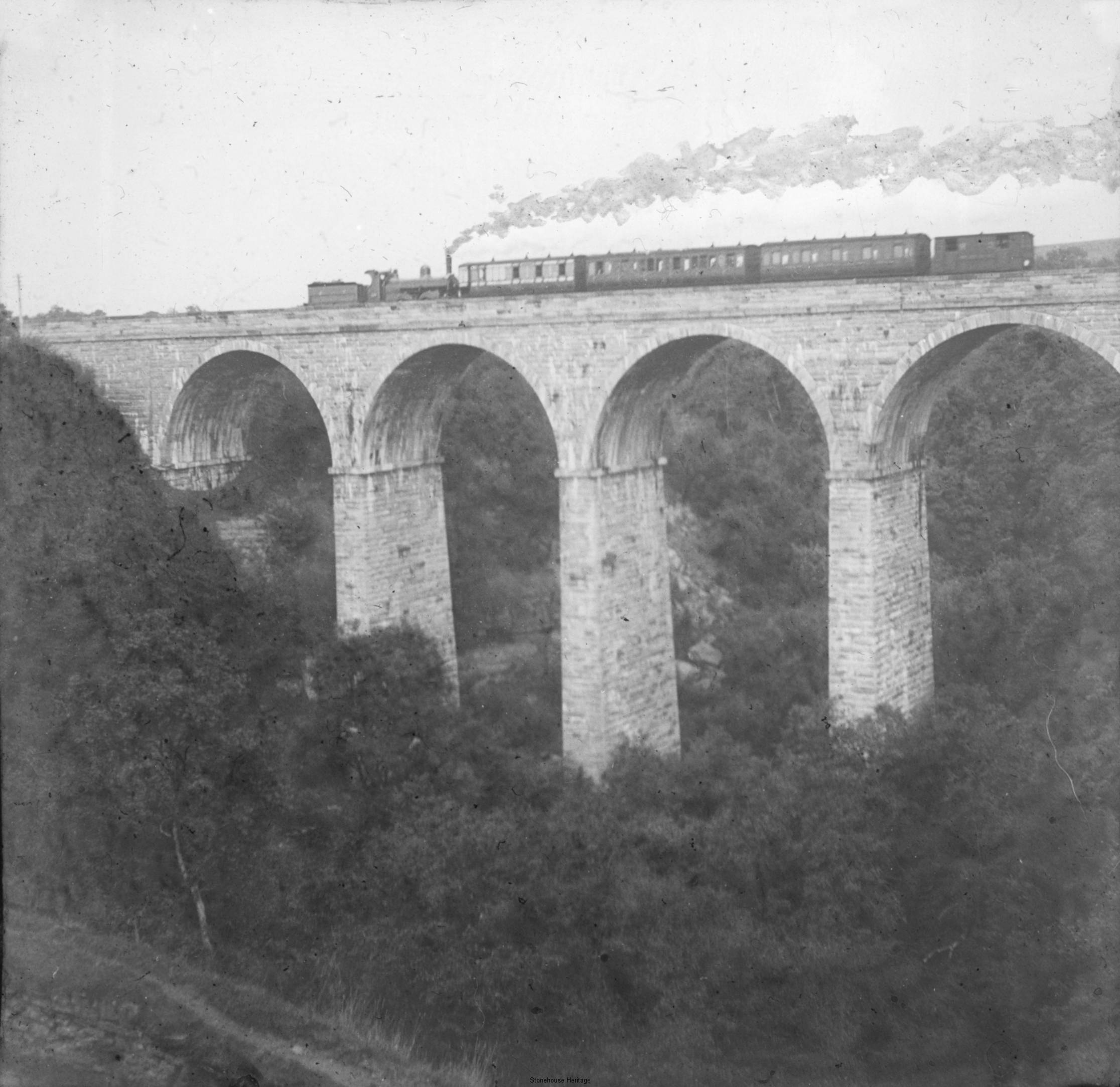 The Cander Water Viaduct was built in 1860 and carried the first railway line in to Stonehouse. It came from Dalserf Junction (Ashgillhead) to Birkenshaw, to Stonehouse then to Cot Castle Terminus. This particular line was changed when the Stonehouse and Larkhall Viaducts were opened in 1905. The line at this stage carried only goods and mineral traffic serving the many pits and works, with the terminus at Cotcastle serving the local agricultural community.