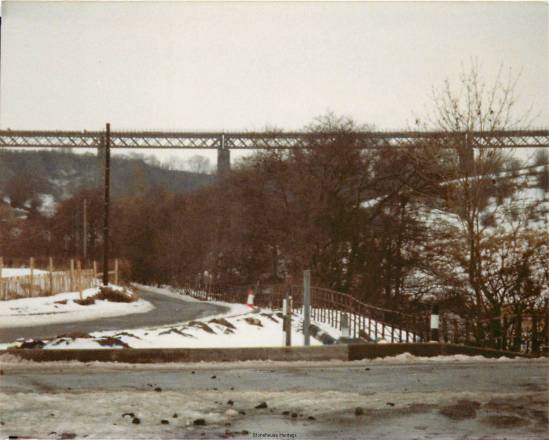 The line from Merryton Junction to Stonehouse required two large viaducts to be built over the valley of the river Avon. Larkhall viaduct is a six span steel truss bridge built on the straight, on a rising gradient of 1 in 80 towards Stonehouse, 530 feet long and 170 feet high. The spans were carried on masonry piers of locally quarried stone, whose foundations sat on a bed of solid rock 60 feet below ground level. The viaduct contained 1399 tons of steel and was reputed to be the highest in Scotland. It was also subject to a speed limit of 15 miles per hour to trains passing over it.
