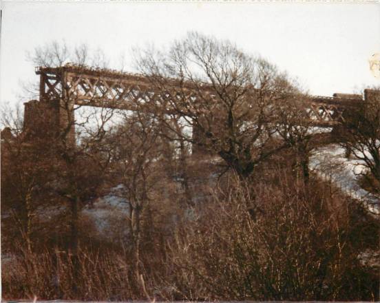 The line from Merryton Junction to Stonehouse required two large viaducts to be built over the valley of the river Avon. Larkhall viaduct is a six span steel truss bridge built on the straight, on a rising gradient of 1 in 80 towards Stonehouse, 530 feet long and 170 feet high. The spans were carried on masonry piers of locally quarried stone, whose foundations sat on a bed of solid rock 60 feet below ground level. The viaduct contained 1399 tons of steel and was reputed to be the highest in Scotland. It was also subject to a speed limit of 15 miles per hour to trains passing over it.