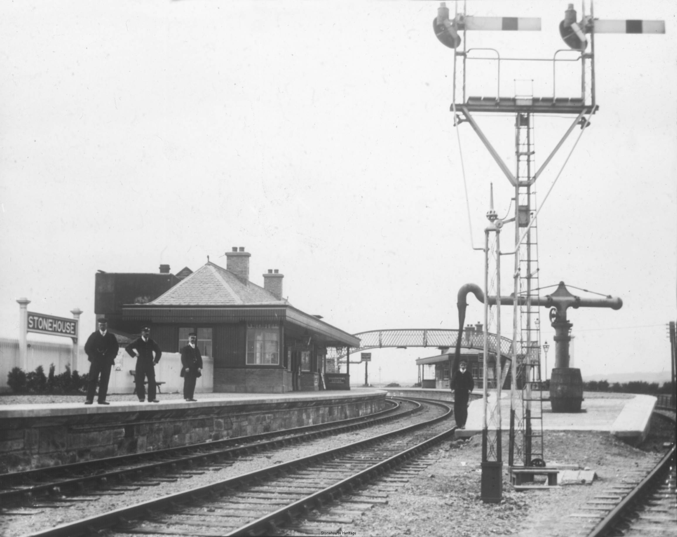 The station at Stonehouse was located between Lawrie Street and Vicars Road on the edge of the village. Stonehouse Station had four platforms where four lines met. It had a  foot bridge, two signal boxes, two water pumps (for filling the locomotive tenders up with water for the boilers) and a goods shed.