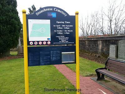 The cemetery contains 1,495 lairs as they are known in Scotland  and the burial took p[lace on 17th August 1906. The cemetery is laid out in four  different sections (A,B, C and D) and is arranged around a central circular feature containing the Cenotaph dedicated to the men of Stonehouse who died in the two World Wars. (A searchable  index  of personnel who were killed in the Great War (WW1)  is listed under Village at war , however further details are available to paid members under the historical information drop down menu.
