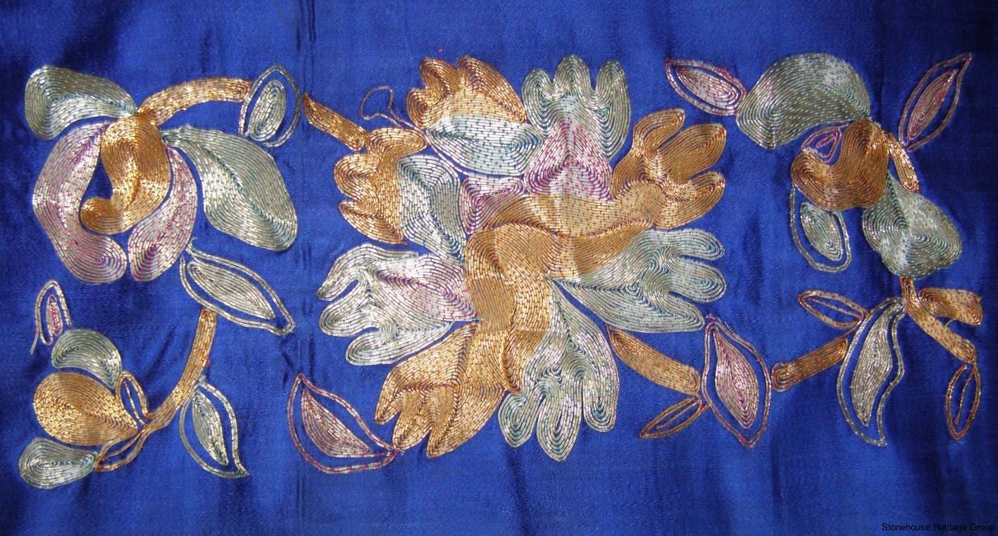 Hand loom weaving was a family business, the trade being handed down from father to son. There was also a great dependency on women in the weaving process, undertaking such tasks as pin winding, tambouring and embroidery.