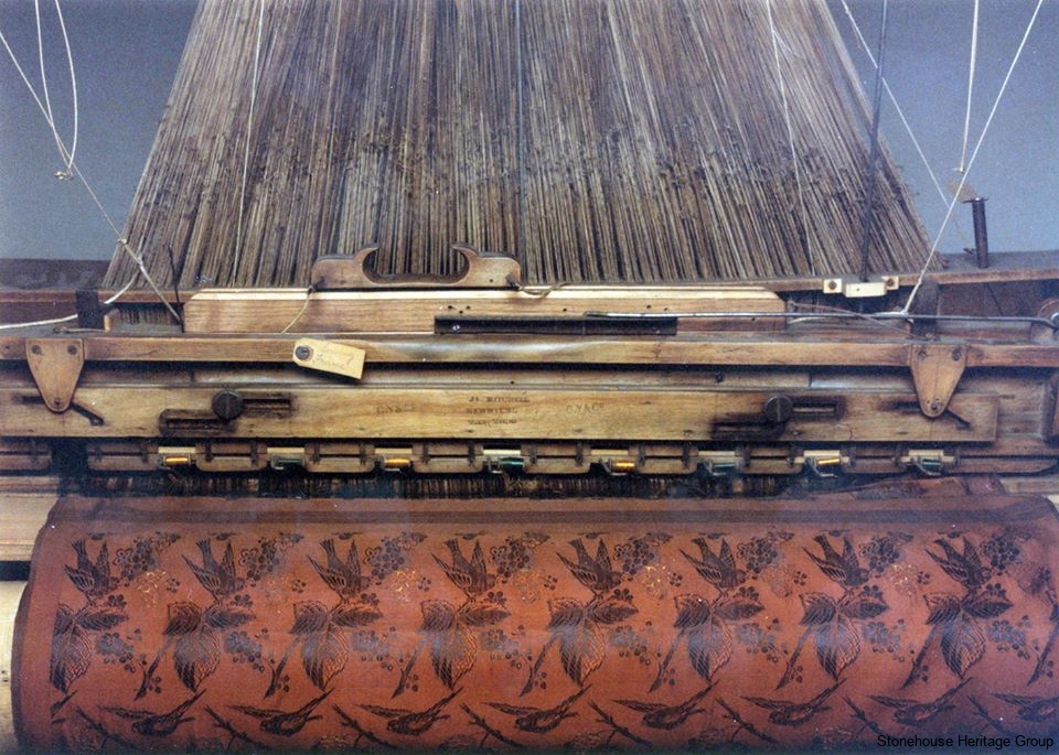 Hand loom weaving was a family business, the trade being handed down from father to son. There was also a great dependency on women in the weaving process, undertaking such tasks as pin winding, tambouring and embroidery.